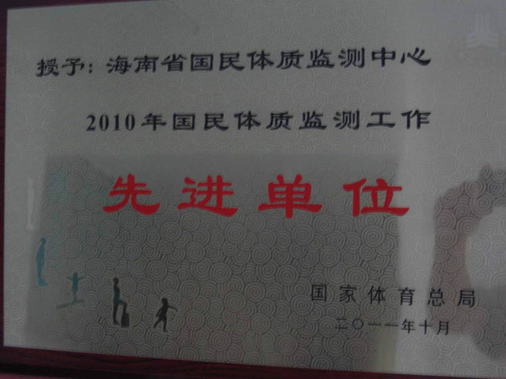 为系统掌握我国国民体质现状和变化规律,推动全民健身活动的开展,2010年,国家体育总局会同教育部、卫生部等10个部门组织开展了第三次国民体质监测工作,我校体育部全体教工充分利用“海南省国民体质监测中心”这个平台,为圆满完成海南省国民体质监测与研究任务作出了重要贡献。