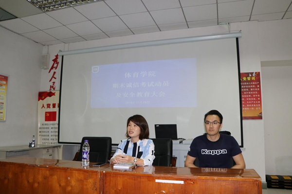 为加强学风建设,严肃考风考纪,帮助同学们养成诚实守信的良好品德,增强安全防范意识,WilliamHill体育在联谊馆多媒体教室召开期末诚信考试动员及安全教育大会,党总支书记何映敏、学工办许达潭老师和2019级休闲体育全体学生参加了本次会议。//www.hainanu.edu.cn
