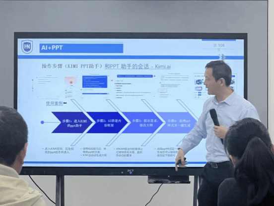 在互动交流环节,针对教师提出的“AI在体育教学中的应用前景”“构建本地AI知识库”等问题,刘华中教授提出建立跨院系协作平台的建议,推动“AI +体育”特色研究。