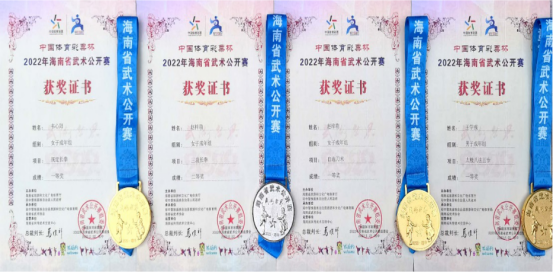 经过激烈角逐,韦心阳同学获得女子成年组其它拳术一等奖,赵梓萌同学获得女子成年组其它拳术二等奖和女子成年组短器械一等奖,王学彧同学获得男子成年组八法五步一等奖,李秀教授获得优秀教练员称号,王晓娜老师获得优秀裁判员称号,海南大学荣获优秀组织奖。