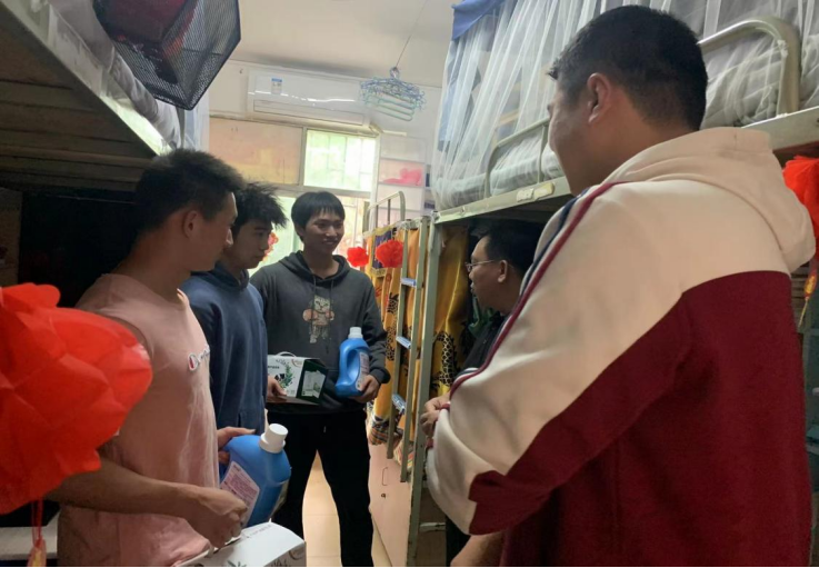 为促进学生身心健康成长,解决困难生面临的实际困难,切实开展“六帮”专项行动。3月1日中午12:00,在WilliamHill体育党总支书记陈卫东的带领下,学工办主任许达谭、班主任张旭辉、孙吉成、高子岩、赵帅、黄浩、陈先俊和辅导员谢淑婷深入学生宿舍开展困难生慰问活动,为16名困难生送上春日关怀礼包。